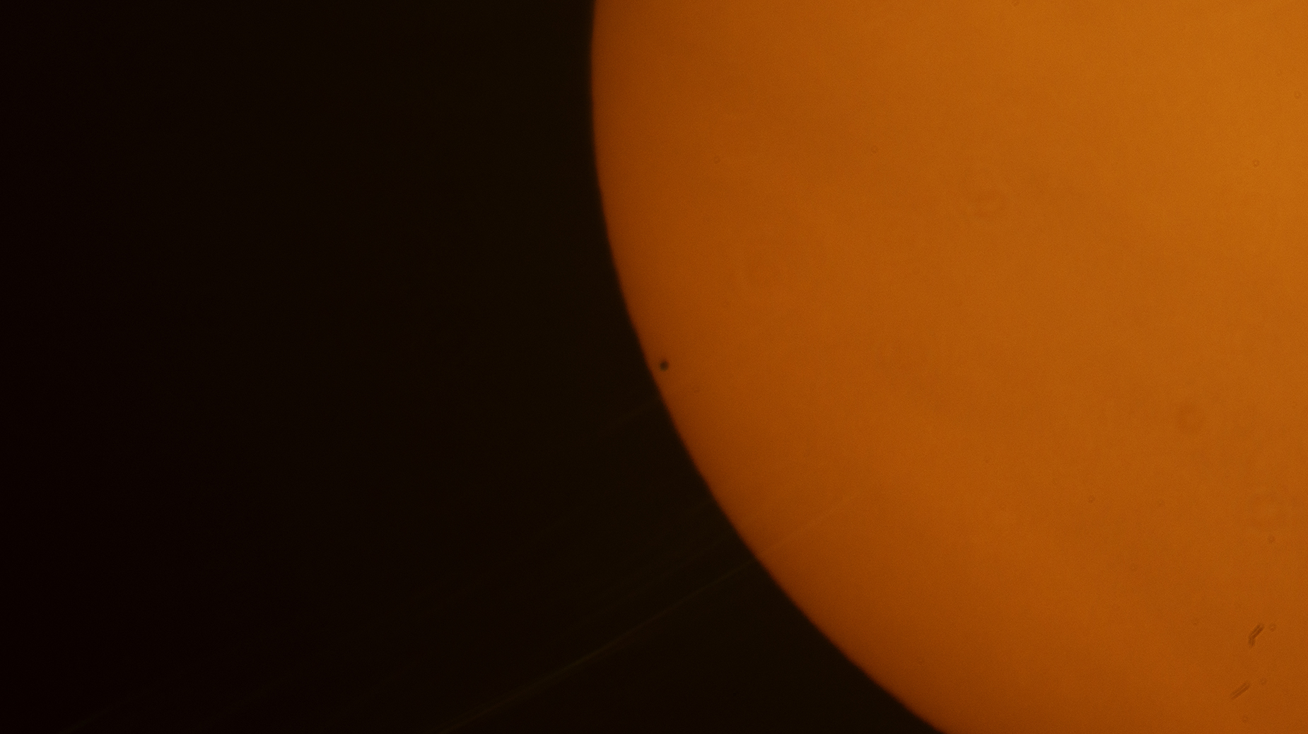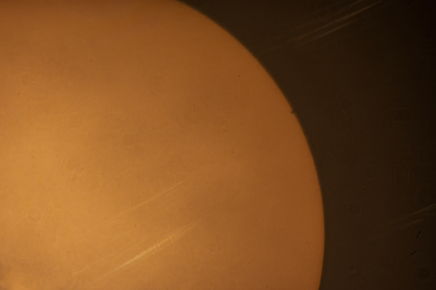 The planet moved across the sun over several hours. Third and fourth contact were caught as clouds began to interfere.