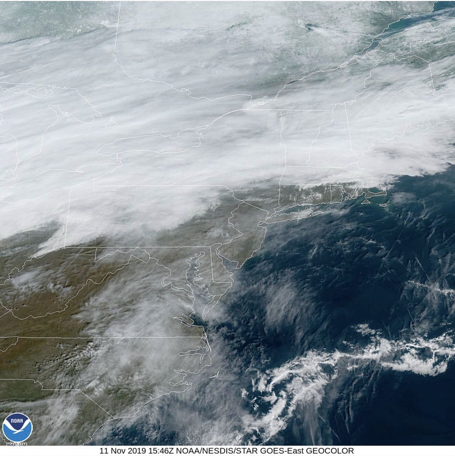 When the 2019 event approached, I wanted to make sure I recorded it properly because the next one would not be until May of 2049. I would be 90 years old so this could be the last one I would see.. When the day approached, the sky was forecast to be cloudy in NH. Fortunately, the weather was going to be clear in southern Connecticutt. So, we packed up our car and drove to my old Navy stomping grounds. There we set up on an overlook of Mystic, Connecticutt to record the transit. This was the satellite photograph for mid-morning on the day of the transit.