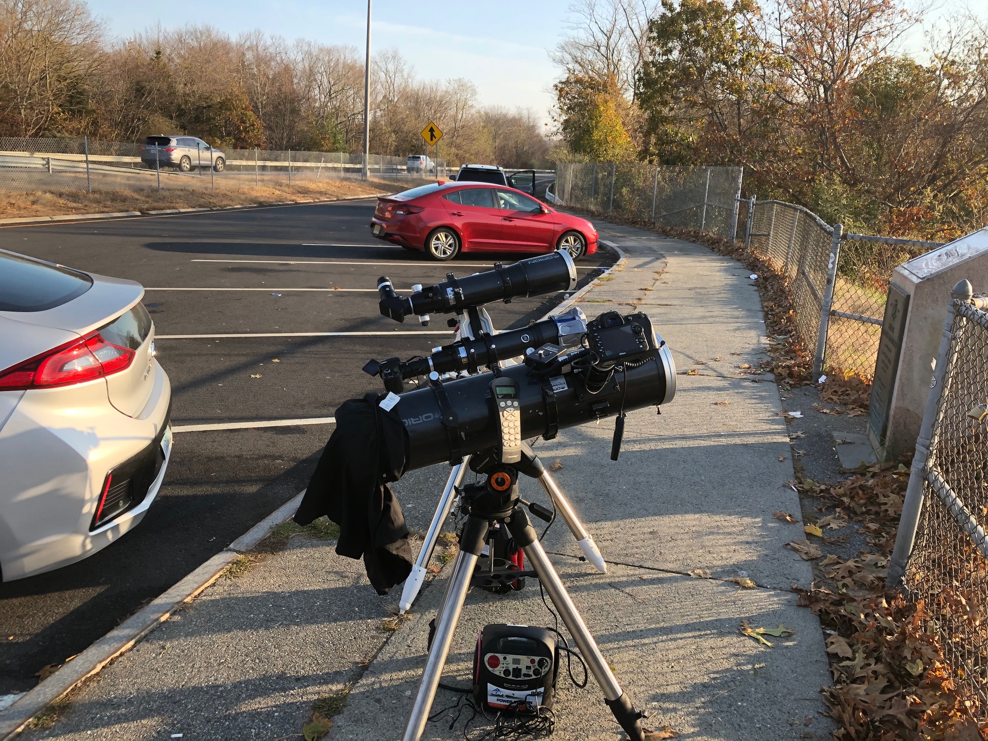 After driving in the early morning we arrived in time to set up our equipment and see first contact. I was going to use my ED80 F7 refractor and 6-inch F5 reflector with a 2X barlow to record the event. I also had my 120mm F5 refractor for visual observation in case any passersby wanted to take a look.