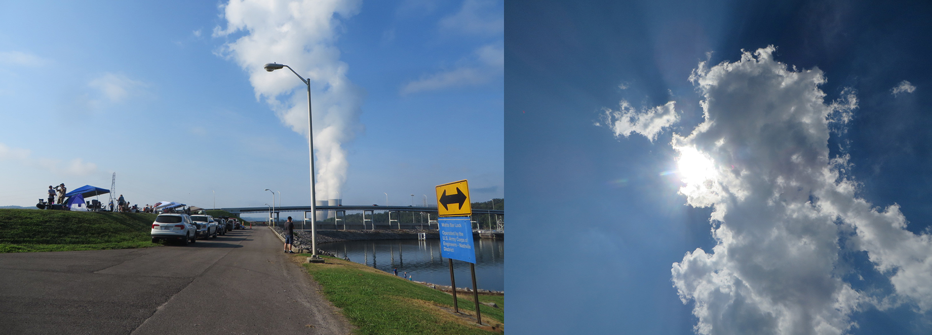 As they say, "The best laid plans of mice and men often go awry". That was what happened here. The main problem had to do with the Watts Bar nuclear power plant that was to the south of the dam. The cooling towers were putting up a large column of steam to the SSW. This was not there when we scouted out the site a few days before. The weather that day had a mild breeze. On this day, there was not a wisp of wind. Early in the morning, it did not seem to be of concern. Many people, who saw my astronomical equipment, considered me an expert and inquired if the steam would be an issue. Looking at the sun and the position of the column, I felt it should not be an issue. However, as the eclipse drew near, I began to think it was going to be close for totality. However, I did not want to move. So, I took my chances and would pay the price for my gamble.
