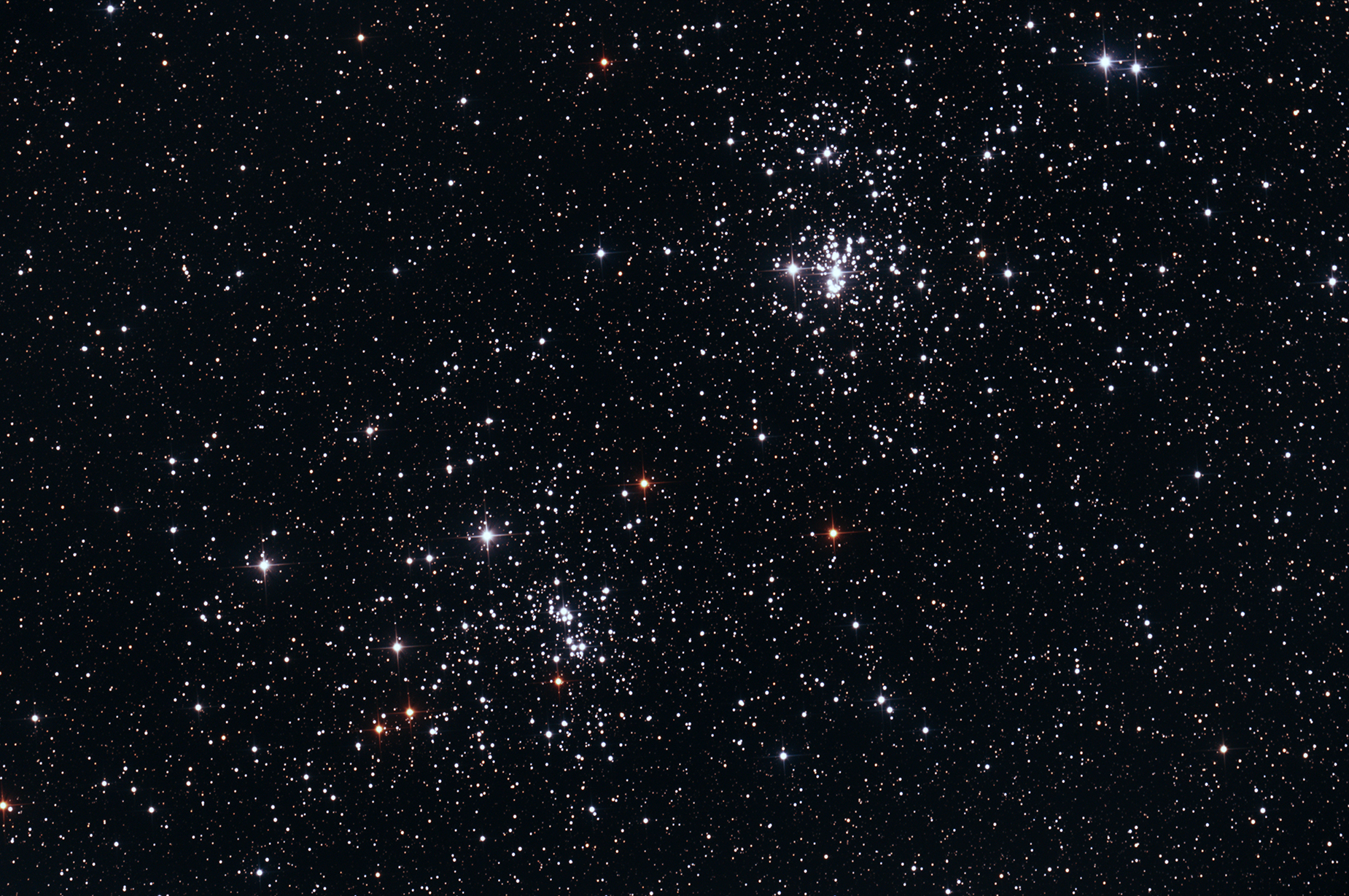 Magnitude: NGC 869 - 3.7 NGC 884 - 3.8 Angular size: NGC 869 - 30' NGC 884 - 30' These two open clusters are a spectacular group of stars between Perseus and Cassiopea. Their size, location, and brightness make them a great astrophotography target.