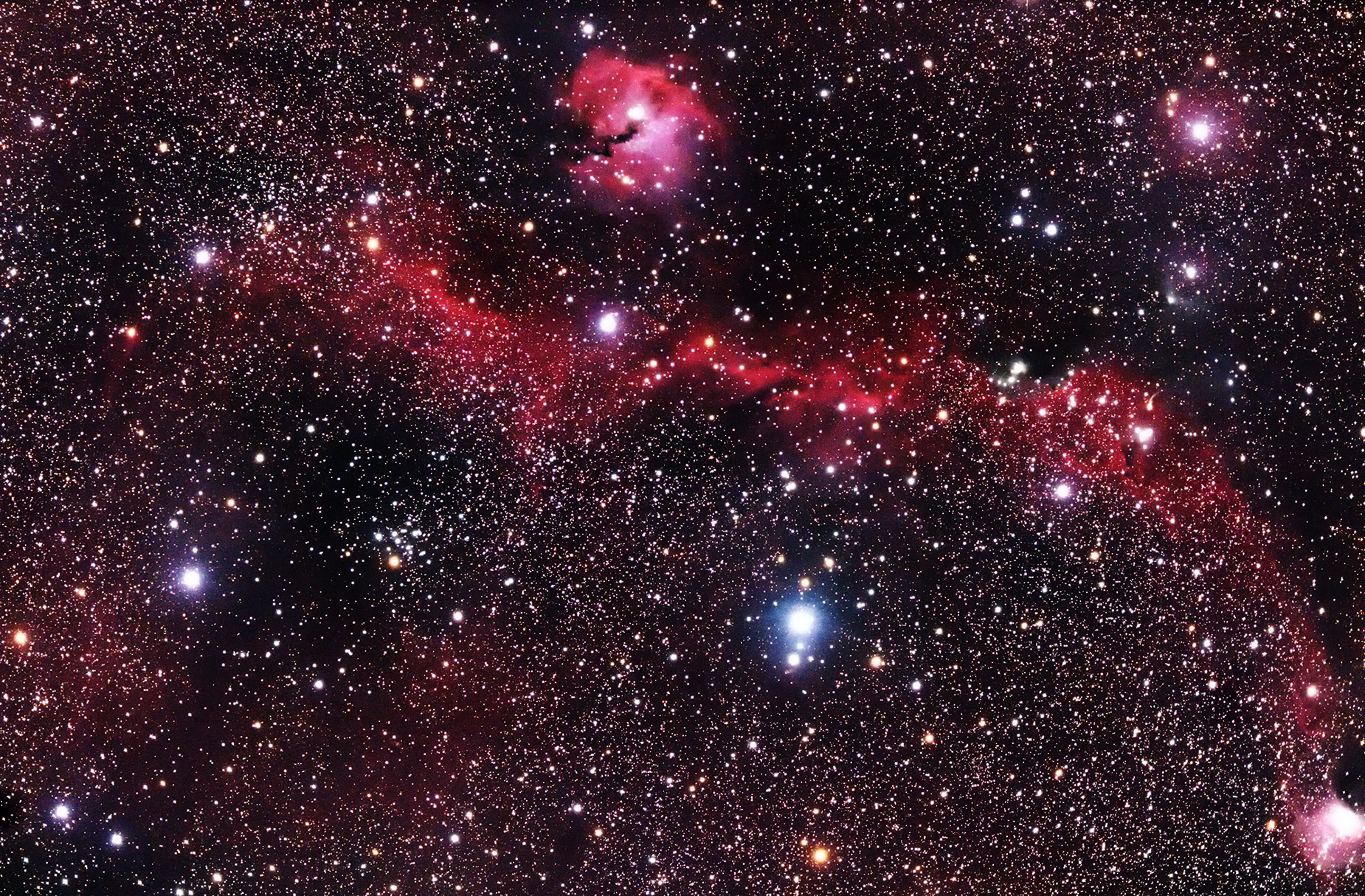 Magnitude: 15.2 Angular size: 2 degrees IC 2177 appears to be the designation for the entire "Seagull" nebula. It gets its name from the shape and is a large target covering over 2 degrees of sky. This makes it ideal for imaging with medium focal length (200-400mm) instruments.