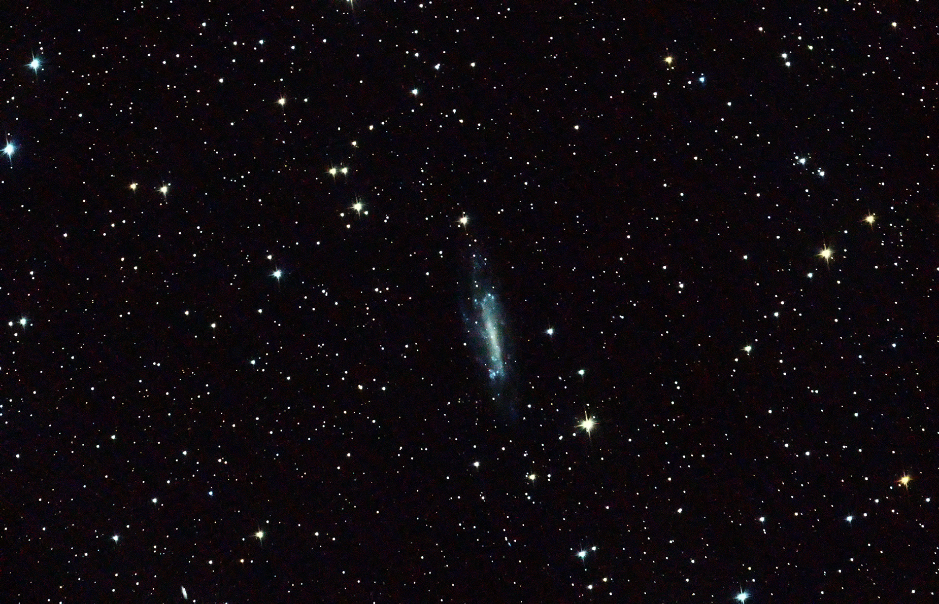 Magnitude: 10.5 Angular size: 21.9' X 7.2' This is a large barred magallenic spiral galaxy, which has a blue color. It is part of the group of galaxies that includes M81 and M82. While the galaxy is thin, its length is well over the 10' limit, which qualifies it for the list.