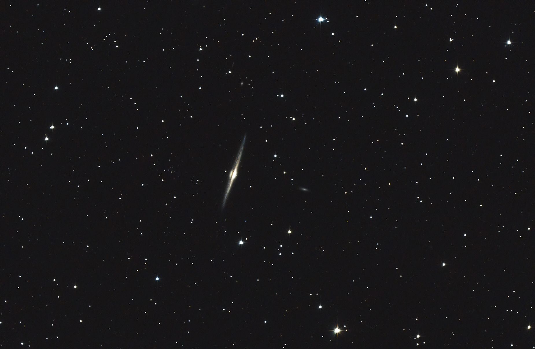 Name: The Needle Galaxy Constellation:Coma Bernices Instrument: 6-inch F5 reflector with sky watcher coma corrector and a modified Canon T3i. Exposure time: A stack of 16 five-minute exposures at ISO 800. Star Chart from Michael Vlasov's Deep sky hunter star atlas available on line https://www.deepskywatch.com/deep-sky-hunter-atlas.html |
