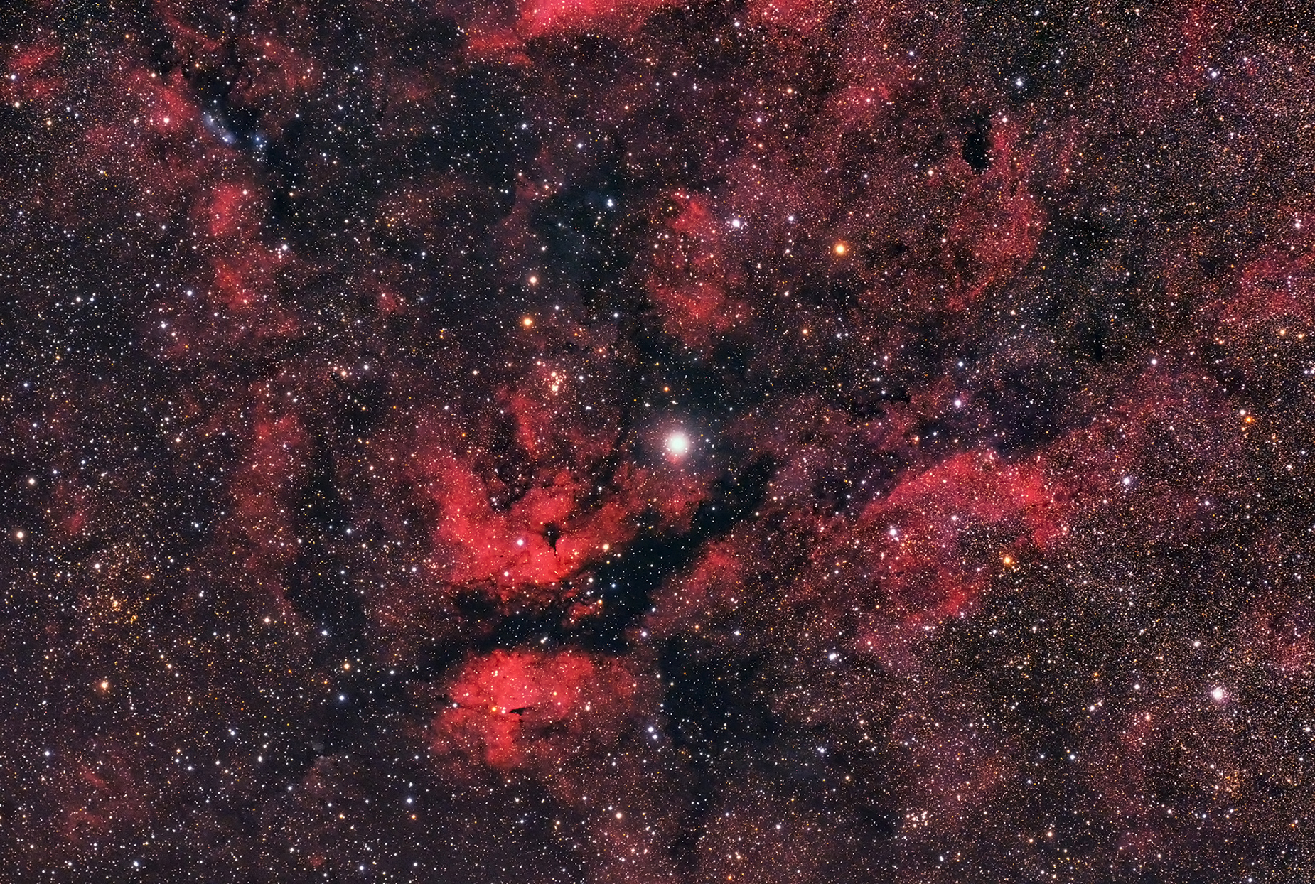 This is part of the large nebula complex surrounding the star Gamma Cygni (Sadr). There are several clusters, dark nebula, reflection nebula, and emission nebula in this region. This is best photographed with short and medium focal length lenses (50-400 mm).